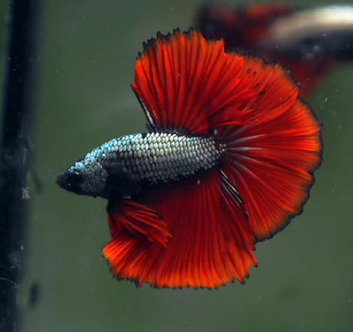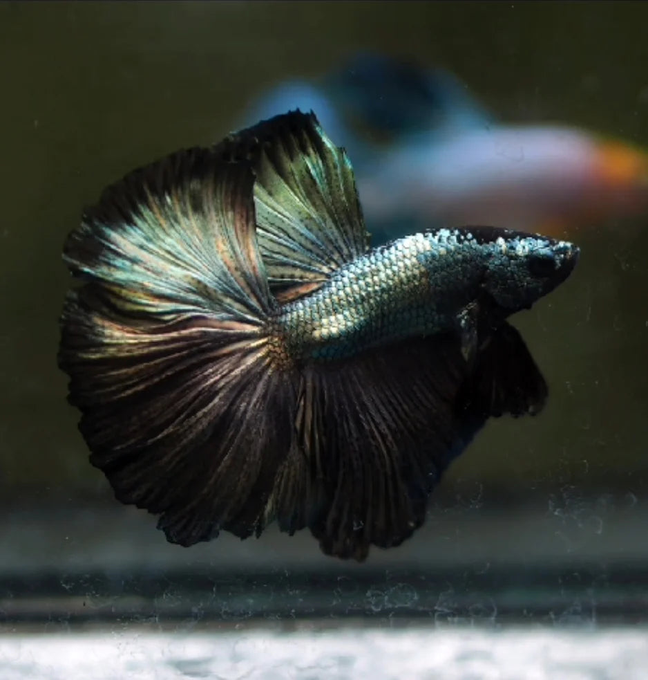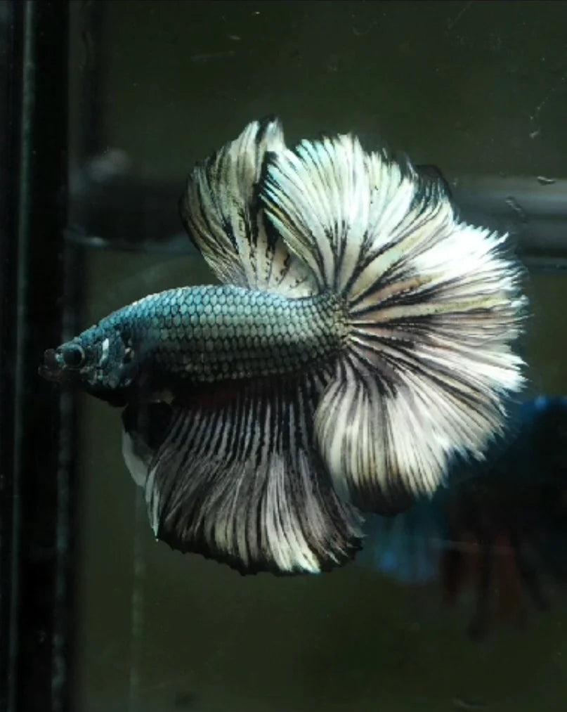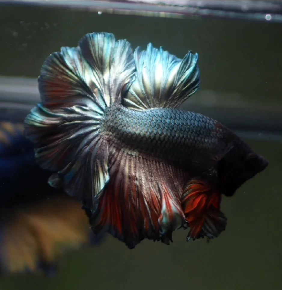 Fins: They will be Halfmoon and over Halfmoons, the top fin will be very high called skyhawk and mohawk. The fins are rose tail or orchid (very wrinkled edges) or feather tail, Ventral fins are long and wide meaning they’re show grade bettas.