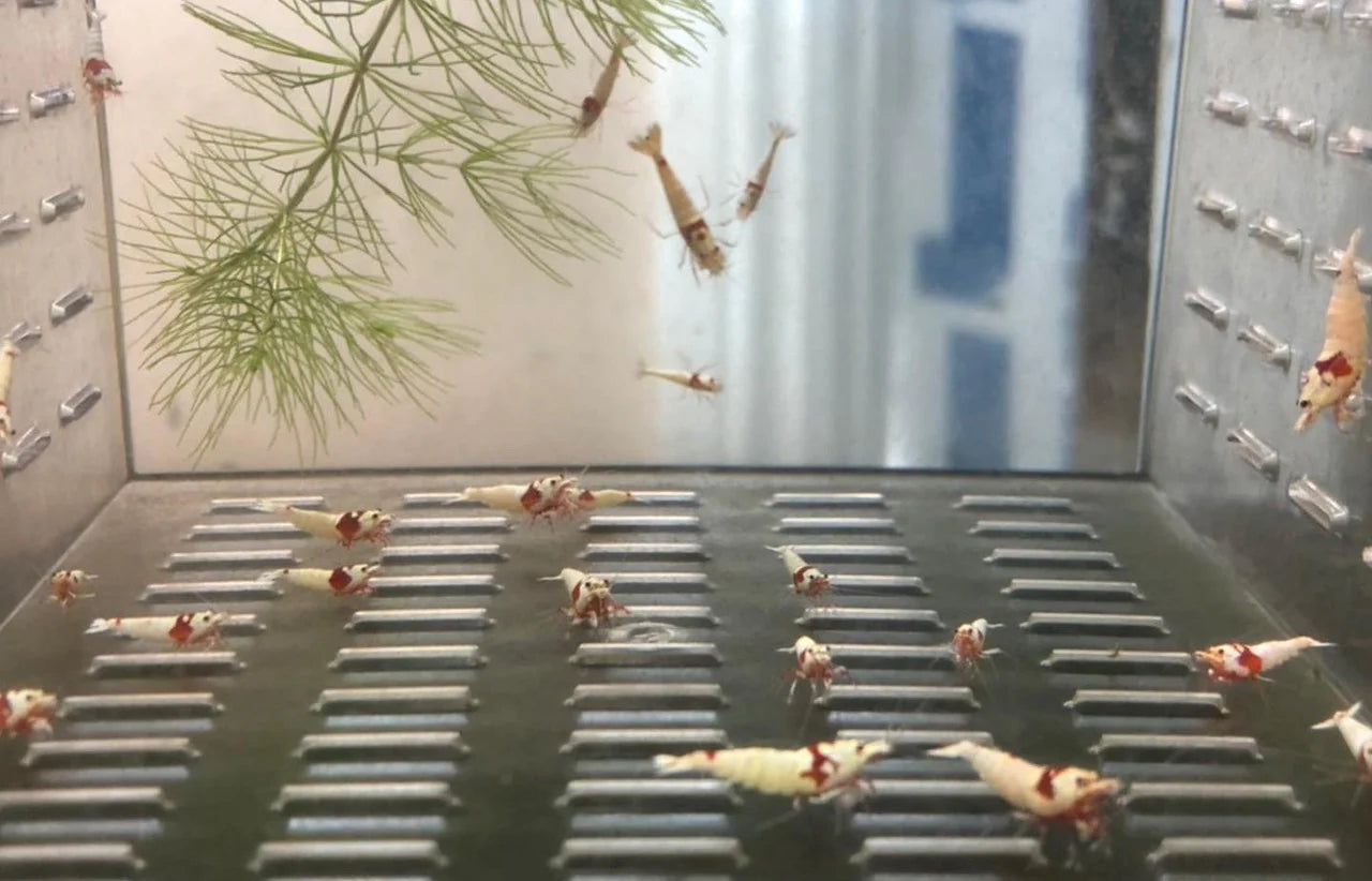 Crystal red shrimp are stunning in color and pattern. They are the red mutation of the wild bee shrimp. Most hobbyists refer to crystal red shrimp as CRS. The CRS is an entry level freshwater shrimp for the Caridina genus. When a hobbyist is making the transition from Neocaridina to Caridina, the crystal red shrimp is a great option to start with. While crystal red require a lower PH, they can still live in condition that are slightly alkaline (PH above 7). Here are the tank conditions we keep our CRS at: Tank Parameter