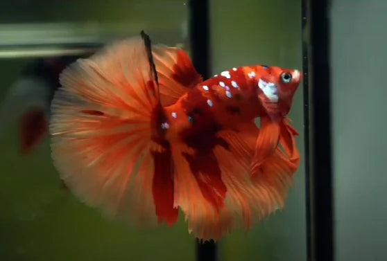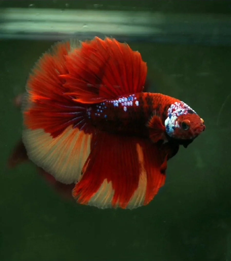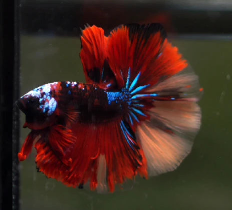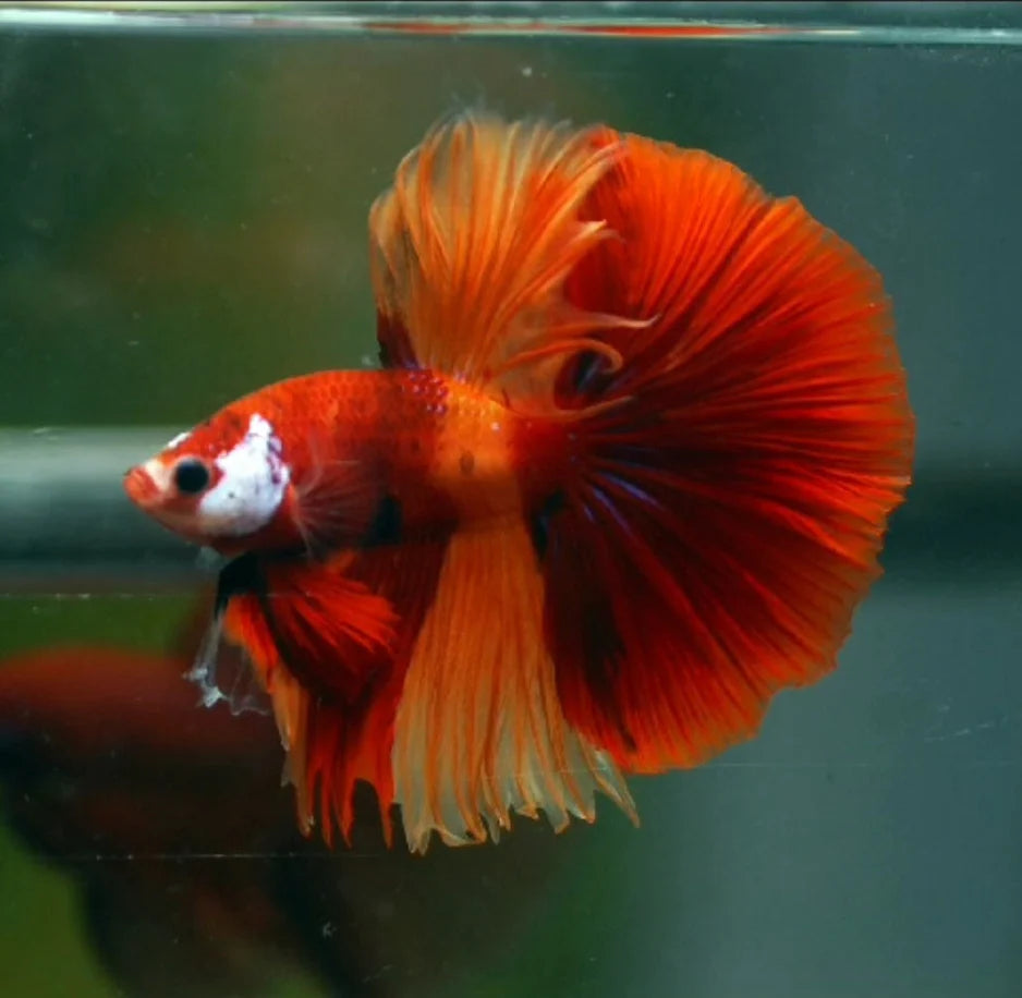 Fins: They will be Halfmoon and over Halfmoons, the top fin will be very high called skyhawk and mohawk. The fins are rose tail or orchid (very wrinkled edges) or feather tail, Ventral fins are long and wide meaning they’re show grade bettas.