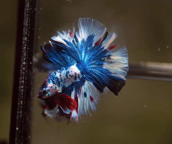 Fins: They will be Halfmoon and over Halfmoons, the top fin will be very high called skyhawk and mohawk. The fins are rose tail or orchid (very wrinkled edges) or feather tail, Ventral fins are long and wide meaning they’re show grade bettas.