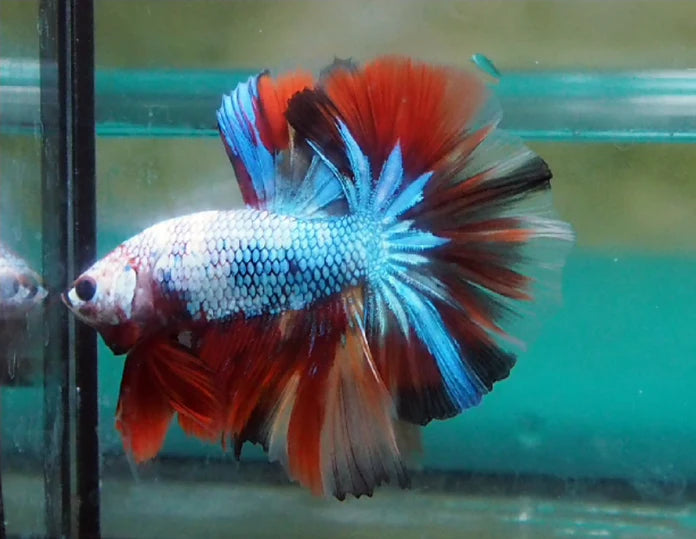 Fins: They will be Halfmoon and over Halfmoons, the top fin will be very high called skyhawk and mohawk. The fins are rose tail or orchid (very wrinkled edges) or feather tail, Ventral fins are long and wide meaning they’re show grade bettas.