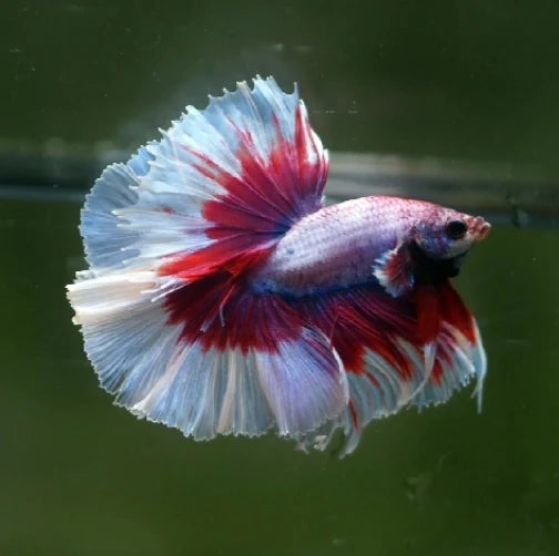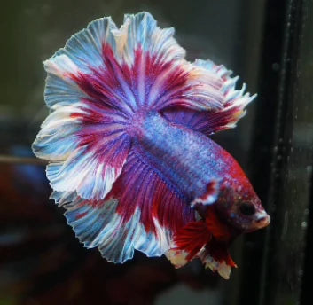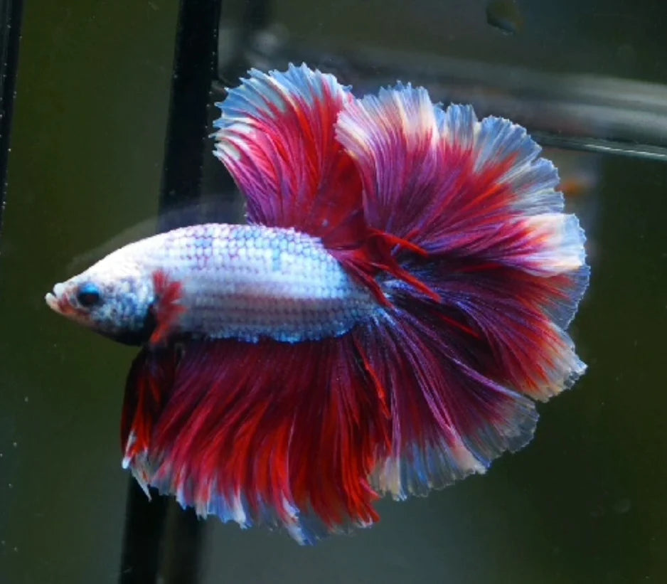 Fins: They will be Halfmoon and over Halfmoons, the top fin will be very high called skyhawk and mohawk. The fins are rose tail or orchid (very wrinkled edges) or feather tail, Ventral fins are long and wide meaning they’re show grade bettas.