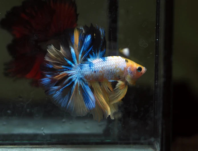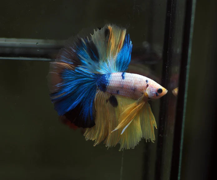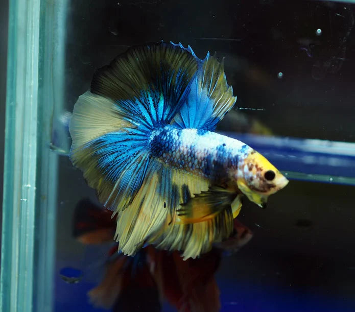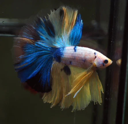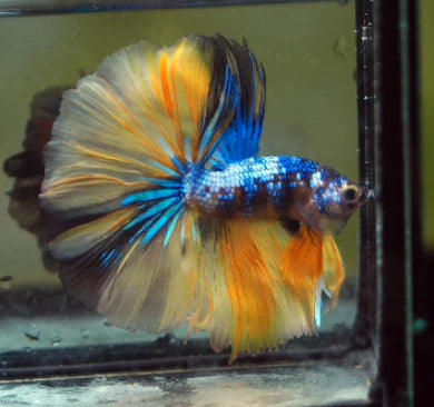 Fins: They will be Halfmoon and over Halfmoons, the top fin will be very high called skyhawk and mohawk. The fins are rose tail or orchid (very wrinkled edges) or feather tail, Ventral fins are long and wide meaning they’re show grade bettas