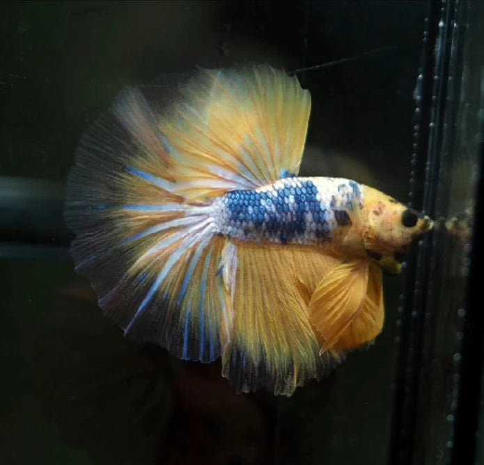 YELLOW KOI AND YELLOW FANCY MARBLE OVER HALFMOON MALE